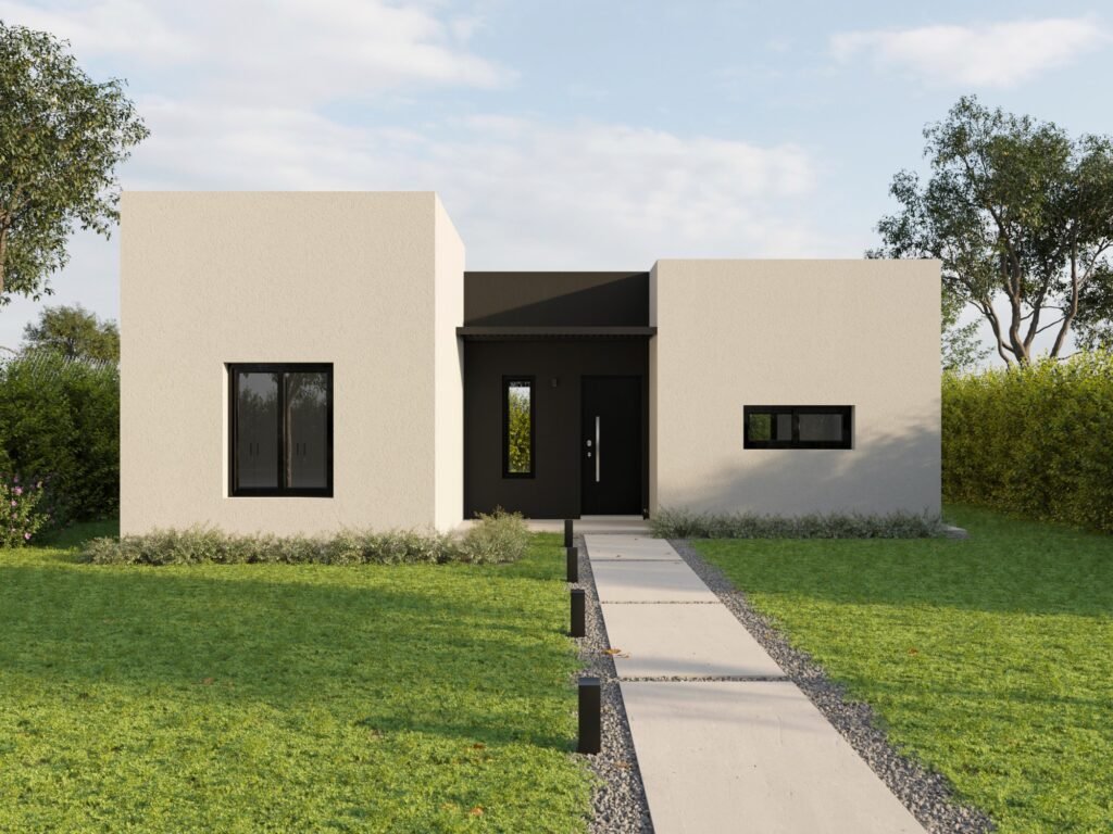 Simplicidad y formas puras, con líneas rectas y volúmenes geométricos…